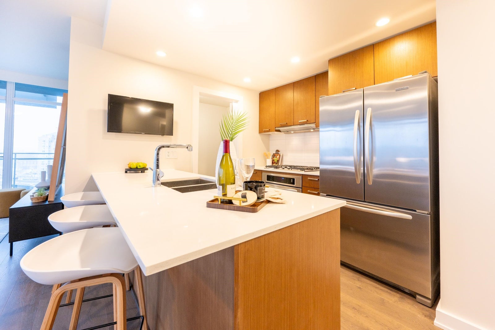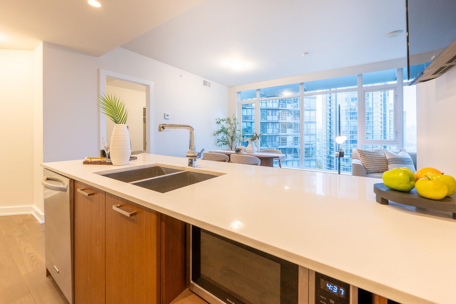 The neighbourhood offers easy access to parks, the seawall, and daily conveniences. Four large parks — David Lam, George Wainborn, Emery Barnes, and Coopers — are all nearby. Elsie Roy Elementary is within walking distance. Cafés and restaurants such as Matchstick, Farm to Table, Faubourg, and Chez Nous are close at hand, and the improved Granville Bridge connection makes reaching Granville Island easy on foot or by bike. Transit, the SkyTrain, and downtown amenities are all within a short walk.