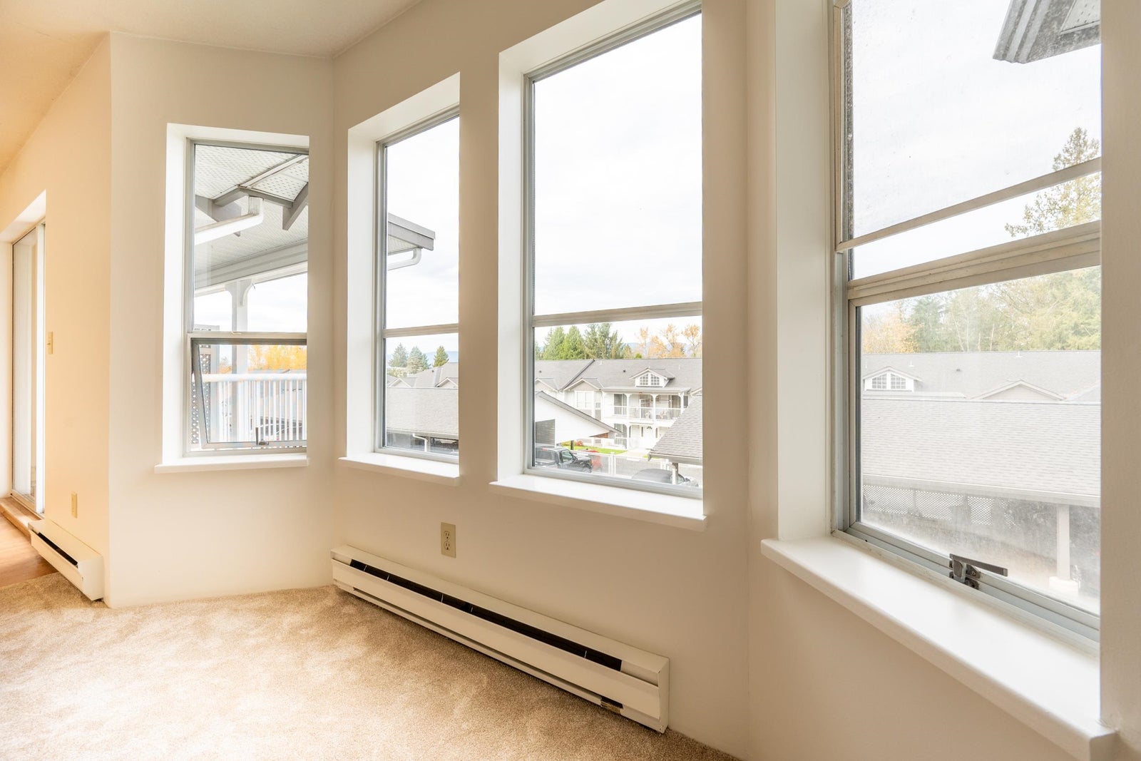 Set in a well-kept four-plex within a larger complex, this bright upper-level townhouse offers house-sized rooms and the ease of strata living. On the far side of the property, away from 224th Street, it enjoys quiet surroundings. Inside, generous rooms, great natural light, and windows on both north and south sides create excellent cross-ventilation. Recently repainted, the home is a blank canvas ready for new ideas. Two decks—one sunny south-facing, one covered with mountain and park views—extend the living space. A large laundry/utility room with a window offers options for an office or extra storage. 1 covered above-ground parking stall, shared storage, and attic access included. The proactive strata has a strong contingency fund and well-maintained common areas.